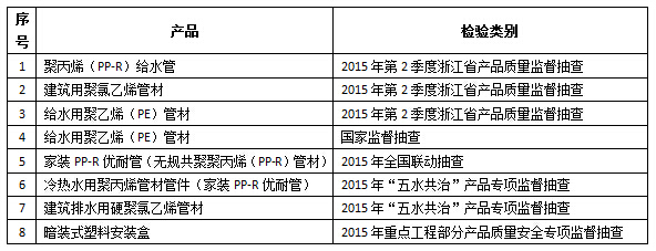 在2015年八次國家級、省級監督抽查中,我公司生產的“家裝PP-R優耐管”、“ 聚丙烯(PP-R)給水管”、“ 建筑用聚氯乙烯管材”、“ 給水用聚乙烯(PE)管材”抽檢合格率達100%。